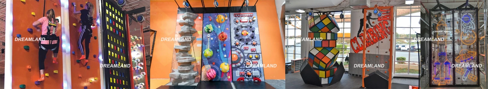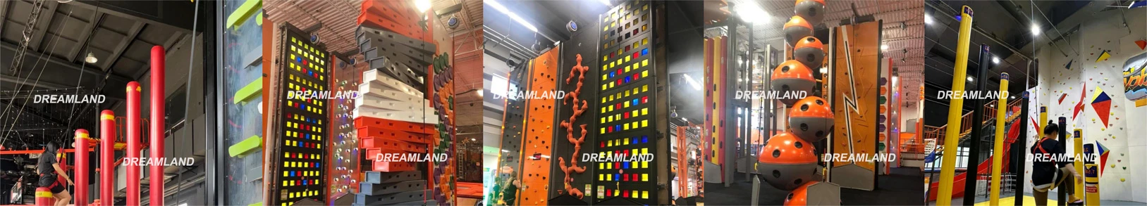The size and style of Dreamland Playground's fun climbing wall can both be customized to suit your needs precisely. It has an overall area of around 25 square meters. The recommended height is 5 to 6 meters. It should be equipped with an automatic belay system. In addition to this, all the climbing wall equipment we supply can be made more fun by adding a timing system, with buttons at the bottom and top to record the player's time through the wall.