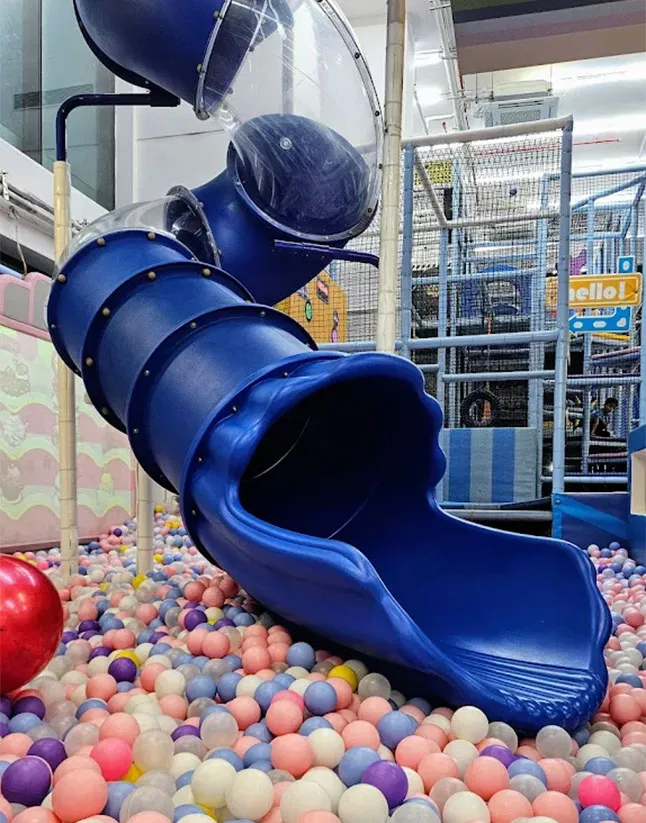 Indoor play area with climbing/ sliding/ jumping/ role-play zones/ café for parents/ birthday & workshop packages.