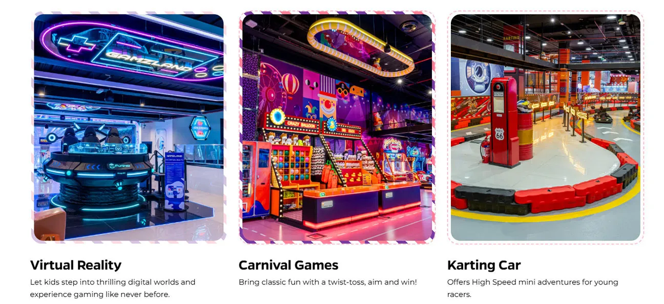 Gamz Land is not your typical playground. It is located at the HOMZ Mall, Dhajeej. It is an ingenious kid-friendly play space that deftly combines creativity and physical activity. At several stations, kids can explore themed performances, act out various parts, and learn naturally. Swarms can be managed, and cleanliness can be maintained because they function in groups. Parents appreciate its educational focus, especially for younger children who enjoy more imaginative and social play that is calmer. Families seeking imaginative, secure, and less strenuous activities should consider this option.
