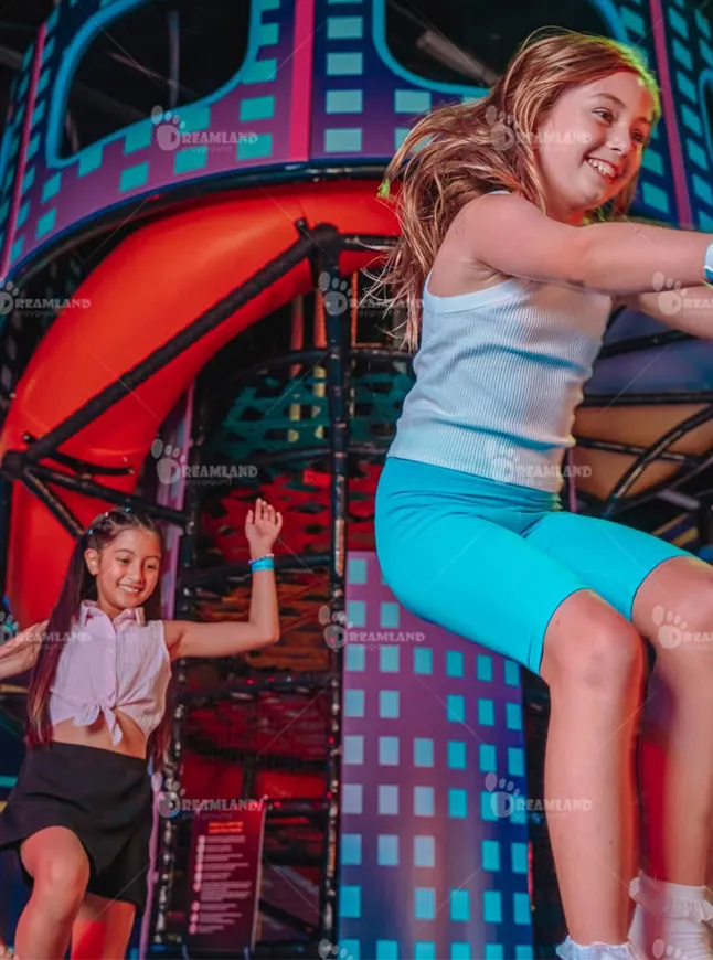 Neon Galaxy prioritizes safety, with all play areas and equipment meeting the highest safety standards. Soft surfaces, padded walls, and secure barriers ensure a safe environment.The vibrant space-themed design encourages creativity, interaction, and physical activity, while dynamic attractions like the Ninja Course promote teamwork and skill development.
